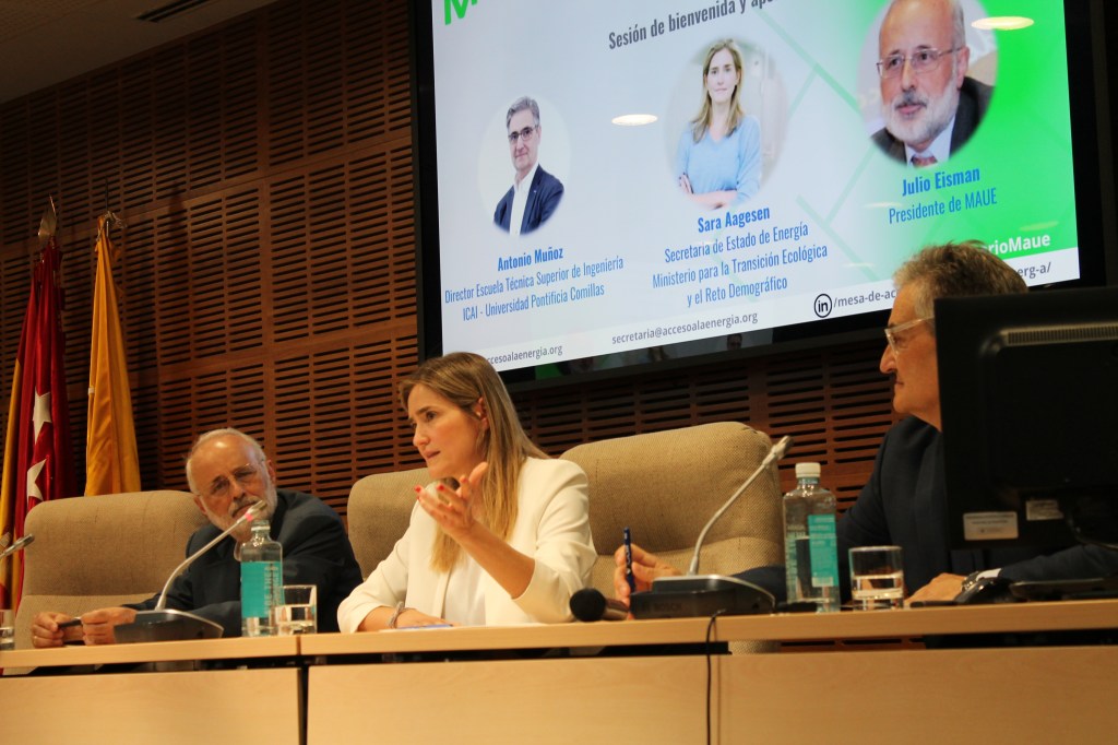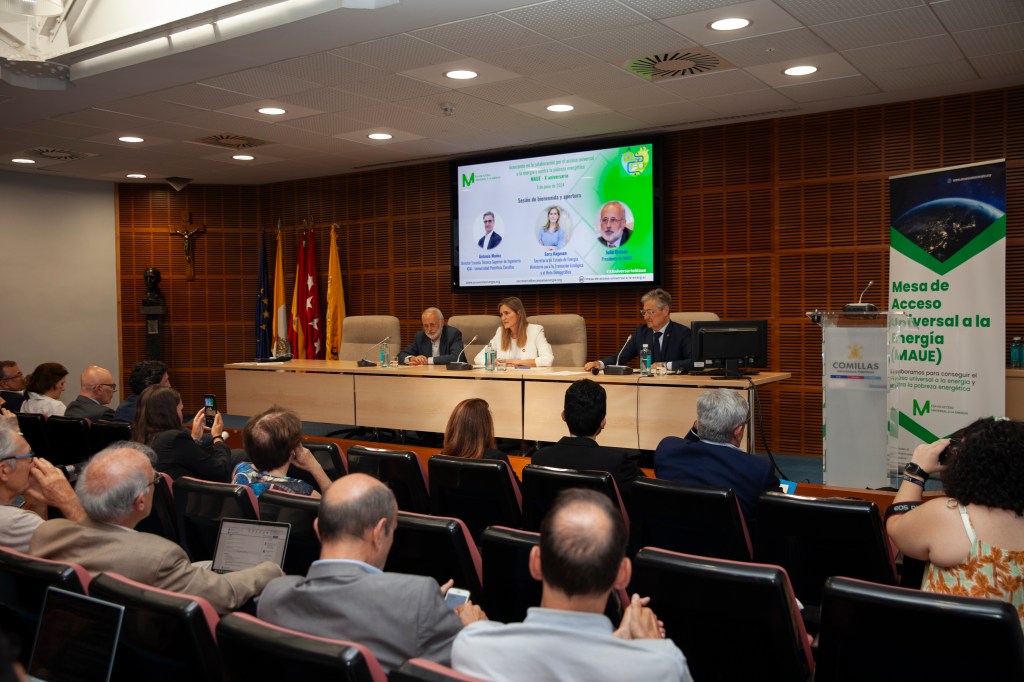 El presidente de MAUE abrió la sesión agradeciendo la participación a asistentes presenciales y remotos, a ponentes, a la Universidad Pontificia Comillas como anfitriona del evento y a la Secretaria de Estado de Energía. Resaltó los diez años de colaboración entre los socios de la MAUE con el objetivo de conseguir el acceso universal a la energía, incluyendo la eliminación de la pobreza energética. E invitando a otras organizaciones a sumarse a la iniciativa.